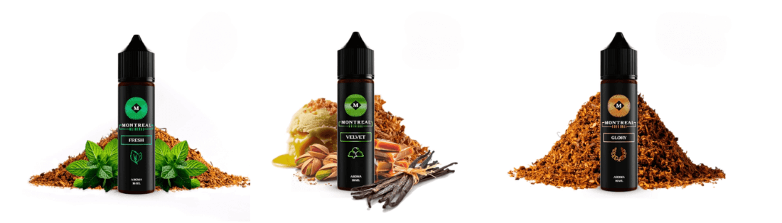 Montreal nabízí celou řadu příchutí v longfill formátu, typicky tabákové varianty, někdy s jemnými dochuceními, včetně mentolu, vanilkového tabáku s pistáciovým krémem i nádechem karamelu.