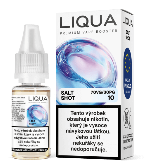 Liqua SALT Shot 70/30 je prémiová nikotinová báze s obsahem nikotinové soli (Nic.Salt), která poskytuje intenzivní nikotinový hit bez dráždění hrdla, typického u běžných e-liquidů s volným nikotinem.